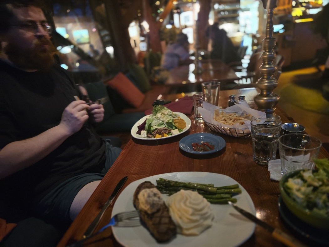 | アーロンとポイントロボスより素敵な場所にてディナー!彼はベジタリアンで肉を食べる俺をライオンだと笑う |