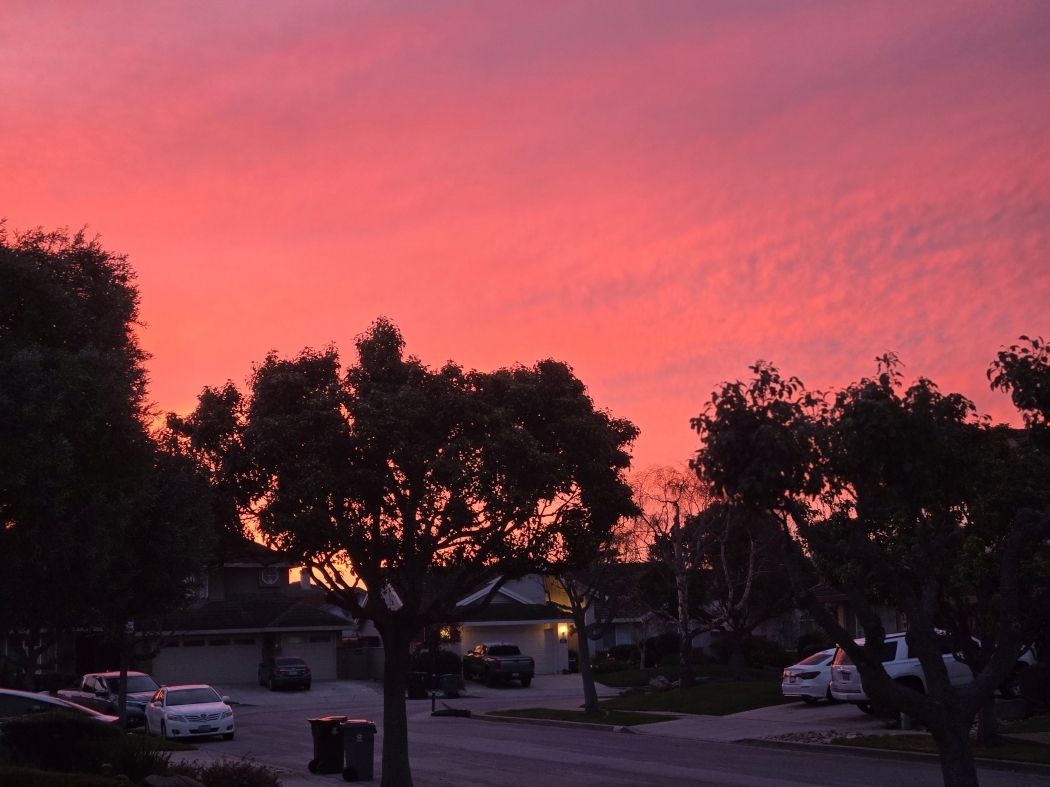 | 7時13分日の出のSalinasの朝焼けは美しい!最低気温は5〜7℃で最高気温が18℃〜26℃の変化 |