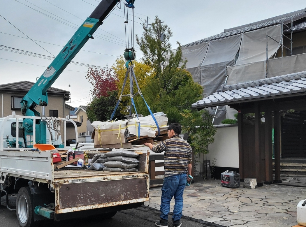 | 池を埋める工事が始まる!加齢で足下の事故から防ぐ為に平らにするのだが職人技を見てると関心事が多く楽し |