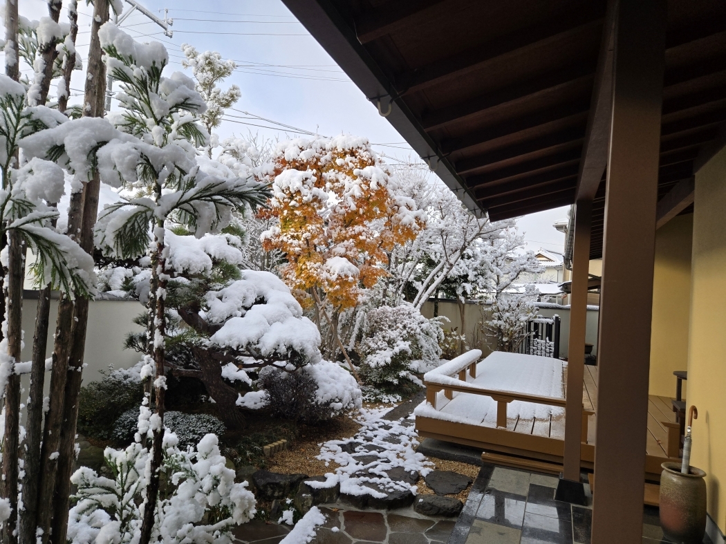 | 今シーズン初積雪となった!昨日の善光寺詣で記念写真を撮ったのだが寒いけど雪景色も良かったかなと思った |