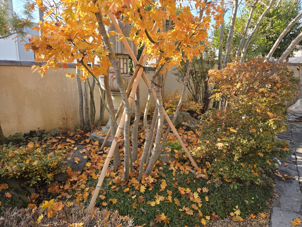 | 落葉盛んの我が家の庭が!自惚れの感が強いが素晴らしく綺麗な色合いだブロアーで強制的に落として撮ったよ |