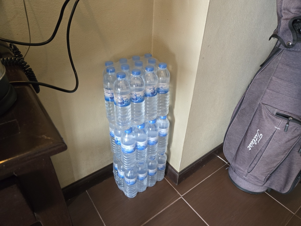 | ペットボトルは安いのだ!60本で100バーツは1本9円ほどだ水道水では歯磨きも注意する様に言われる |