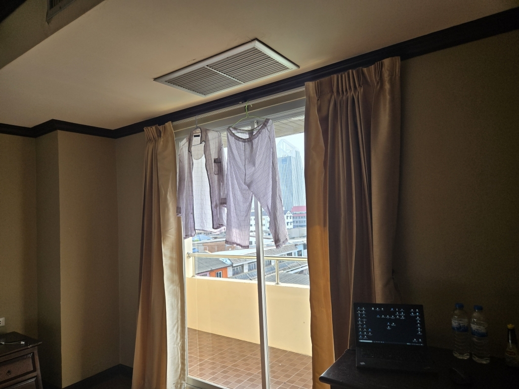 | 朝の洗濯は毎日です!夕方には乾くので下着も靴下もシャツも手馴れた事になってるホテルの一人暮らしも楽し |